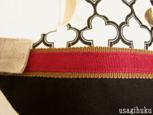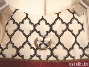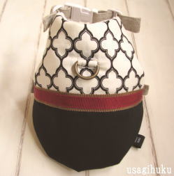 アイボリー&ブラックのパターン柄のコットン生地と、