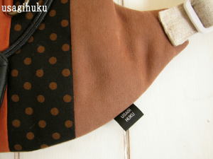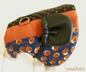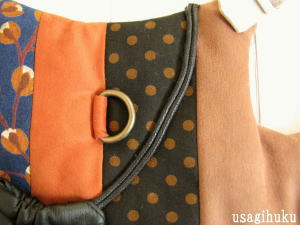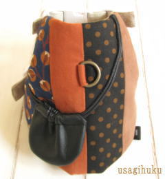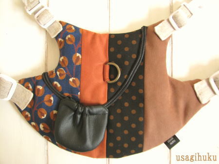 | 巾着バッグハーネス<茶系パッチワーク&黒の合皮バッグ> こちらはハーネス単品です |