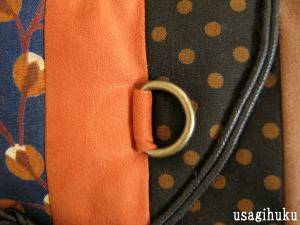 オレンジとブラウンの二色のスウェード生地を組み合わせました。