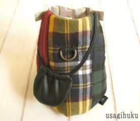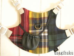 | 巾着バッグハーネス<トラッドチェック&黒の合皮バッグ> こちらはハーネス単品です |
